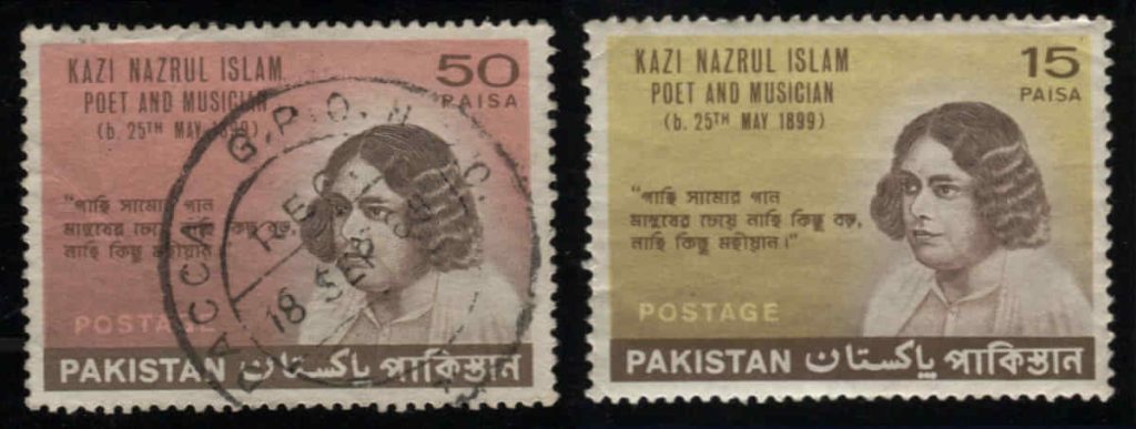 ১৯৬৮ সালে তত্কালীন পাকিস্তান ডাক বিভাগ বাংলা ভাষার কবি নজরুলকে নিয়ে প্রথম ডাকটিকিট প্রকাশ করে। নজরুলের প্রথম ডাকটিকিট অবমুক্ত করার এক সপ্তাহ আগেই তখনকার ডাক বিভাগ টিকিটের ছবিসহ সমস্ত প্রচার মাধ্যমে বিজ্ঞপ্তি প্রকাশ করে। কিন্তু ডাকটিকিটে ধরা পড়ল মস্ত বড় ভুল। কবির জন্মবর্ষ ১০ বছর পিছিয়ে লেখা হয়েছে ১৮৮৯ খ্রিষ্টাব্দ। এ নিয়ে দু-তিন দিন ধরে ঢাকার পত্র-পত্রিকায় তখন প্রচুর লেখালেখি হয়েছিল। অবশেষে ডাকটিকিট প্রকাশের তারিখ গেল পিছিয়ে, ভুল সংশোধন করে মাস খানেক পর অবমুক্ত করা নজরুলের ডাকটিকিট। ভুল তবু রয়েই গেল, এবার কবিতায়। ডাকটিকিটে ছাপা হলো—