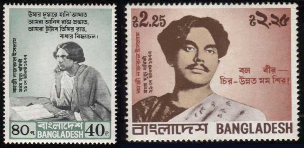 ১৯৭১ সালে সশস্ত্র মুক্তিযুদ্ধের মাধ্যমে বাংলাদেশ স্বাধীন হলো। কাজী নজরুল ইসলামকে জাতীয় কবি ঘোষণা করা হল। ১৯৭৬ সালে কবি জগত্সংসারের মায়া ত্যাগ করলেন। বাংলাদেশের ডাক বিভাগ এই মহান কবির প্রথম মৃত্যুবার্ষিকী স্মরণ করেছিল দুটো ডাকটিকিট প্রকাশের মধ্য দিয়ে। স্বাধীন বাংলাদেশের ডাকটিকিটে প্রথমবারের মতো উঠে এলেন কোনো কবিব্যক্তিত্ব।